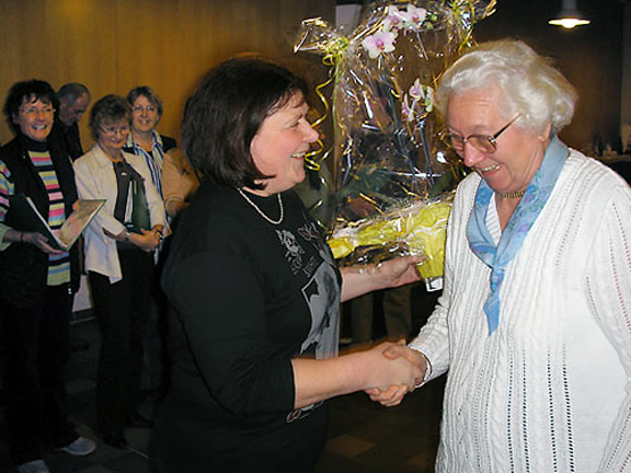 Ihren 80. Geburtstag feierte Irmentraud Kops mit den Sängerinnen und Sängern des GV Moosbach. Sie singt seit 1.10.2004 im Chor mit und unterstützt dort die Sopranistinnen. Im Rahmen einer Singstunde in der Bürgerhalle wurden unter Leitung von Franz Peter Hintermayer ihre Wunschlieder gesungen und von der 1. Vorsitzenden Brigitte Kunert ein Präsent überreicht. Diese bedankte sich bei der Jubilarin für ihr Engagement im Chor und wünschte viel Glück und vor allem Gesundheit für die Zukunft. Möge sie weiterhin immer „gut bei Stimme bleiben!”